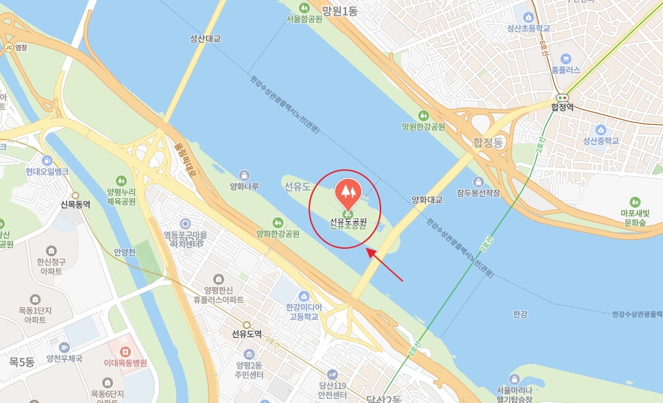 양화대교 근처에 위치한 공원으로, 선유도역에서 도보로 이동 가능합니다.